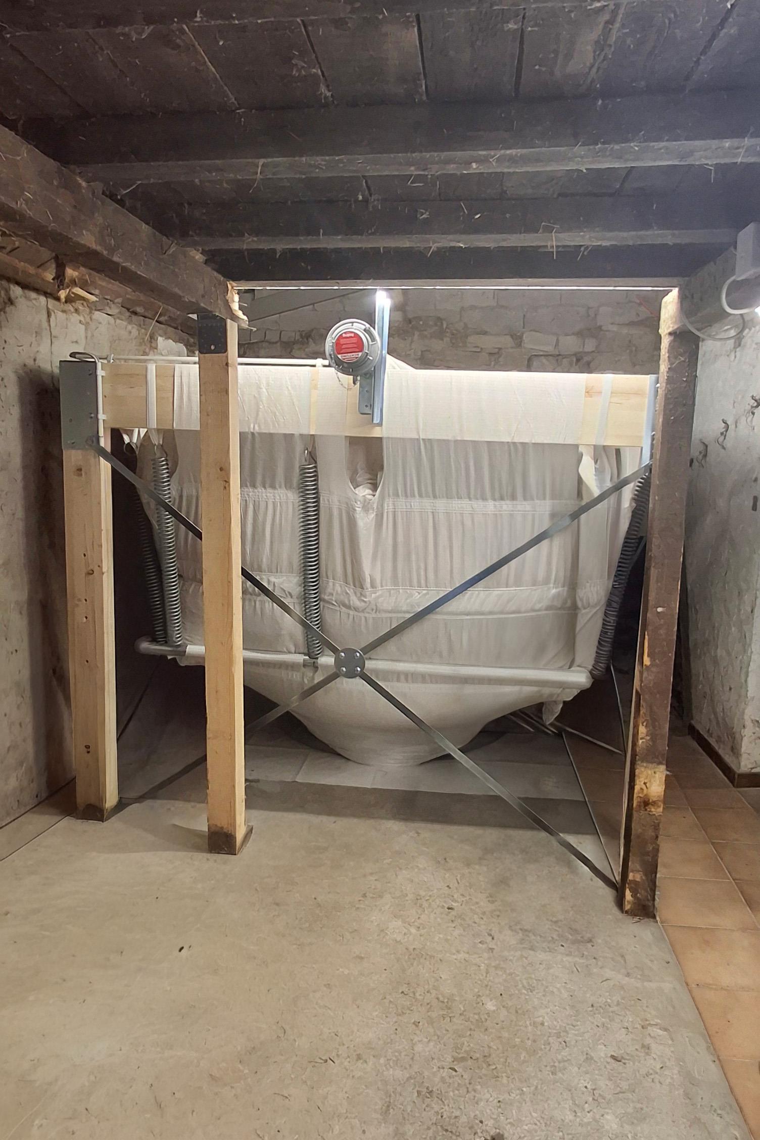 Die vollständig automatische Brennstoffversorgung des Kessels erfolgt über ein Sacksilo mit Saugsystem, das eine platzsparende und zuverlässige Lagerung der Pellets ermöglicht.