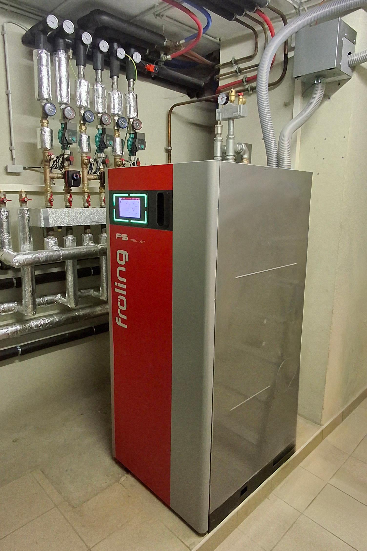 Zum Einsatz kommt ein Pelletkessel Fröling P5 Pellet, der durch seine hohe Effizienz und niedrigen Emissionen überzeugt.