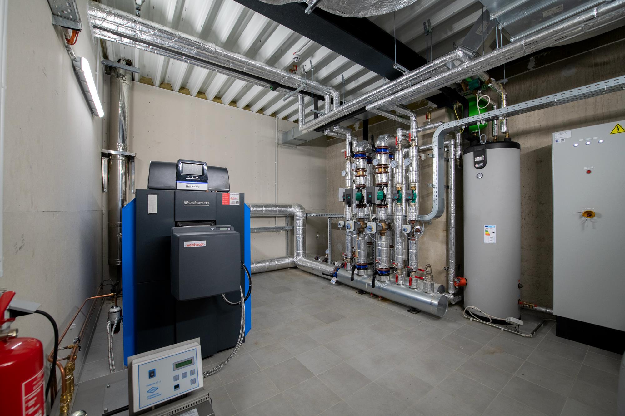 - Nous avons installé un système de chauffage au fioul performant de Buderus, combiné à des panneaux rayonnants au plafond pour une répartition homogène et agréable de la chaleur dans les vastes halls.