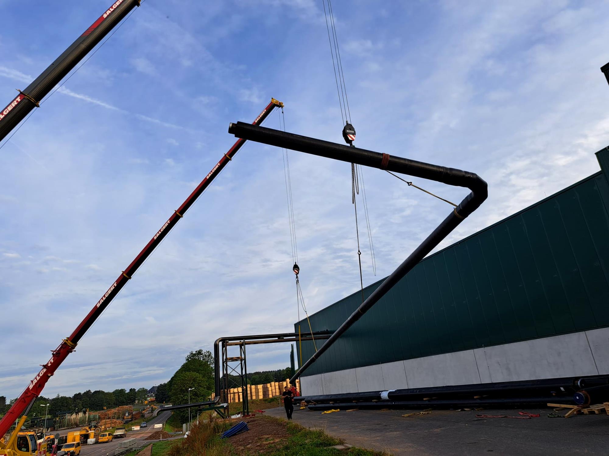 - Extension du réseau de chaleur : Un réseau de chaleur performant a été installé sur l'ensemble du site, permettant de distribuer efficacement la chaleur générée par les déchets de bois vers les différentes installations de production (séchoirs à bandes, chambres de séchage et presses), les halls et les espaces.